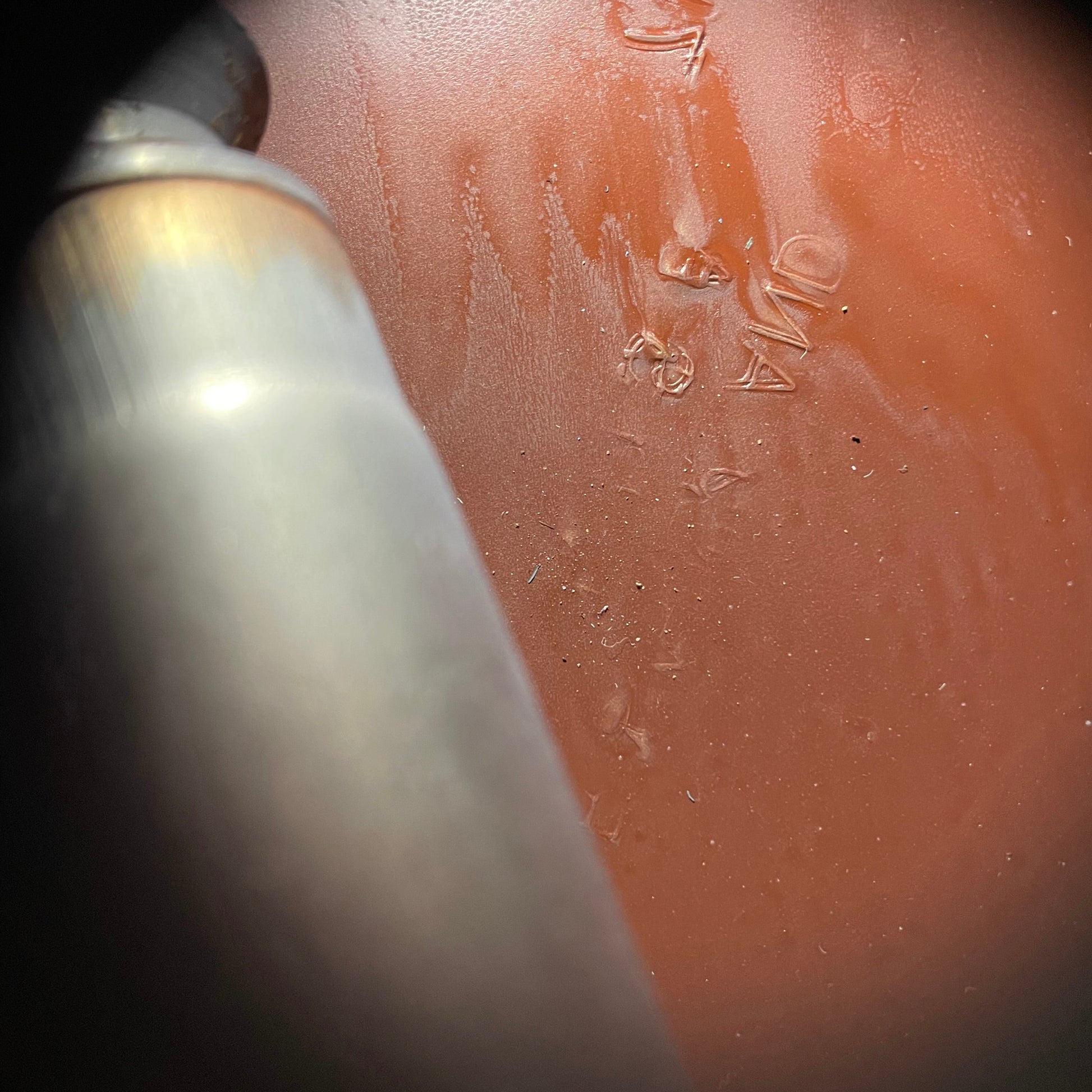 タンク内部は錆もなく、非常にキレイな状態です。元々の赤茶色の錆止め塗装がキレイに残っています。